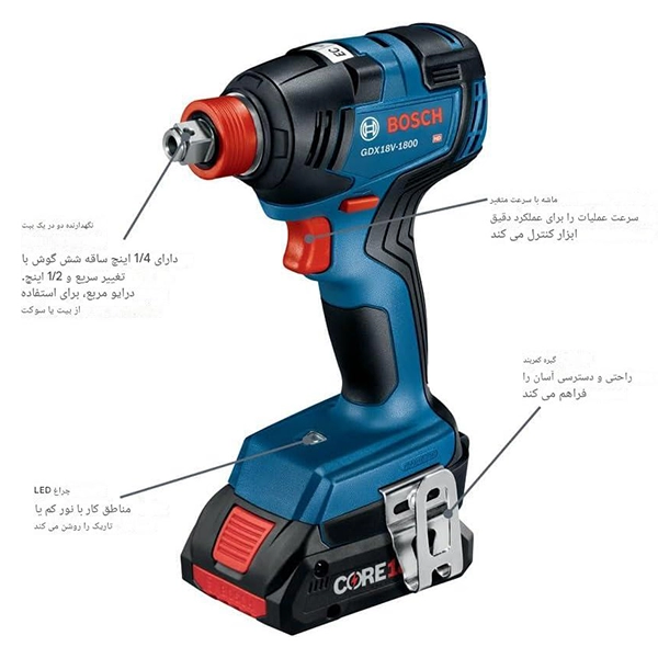 بکس شارژی 18 ولت بوش مدل Bosch GDX18V-1800B12 18V EC Brushless 1/4 In 1/2