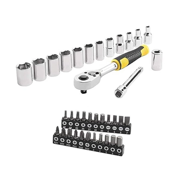مجموعه 37 عددی آچار بکس و بیت بکس درایو 1/4 استنلی STANLEY Chrome Compact Socket Set, Silver/Black